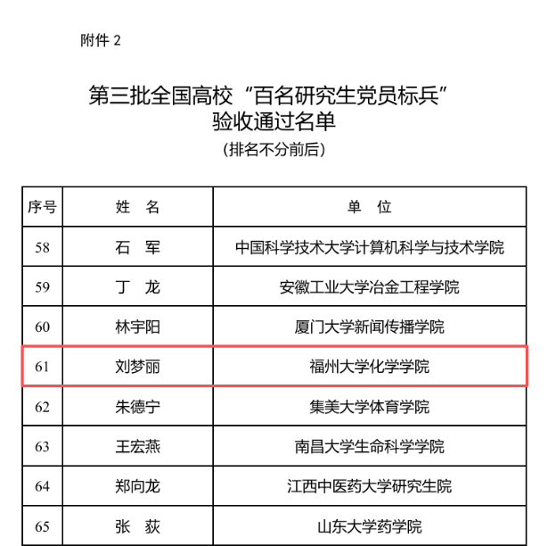 2025年12月16日,教育部思想政治工作司公示第三批全国高校“百个研究生样板党支部”和“百名研究生党员标兵”创建验收结果,我院创新创业党支部、博士研究生刘梦丽分别通过两项验收,标志着学院研究生党建工作取得阶段性成效。