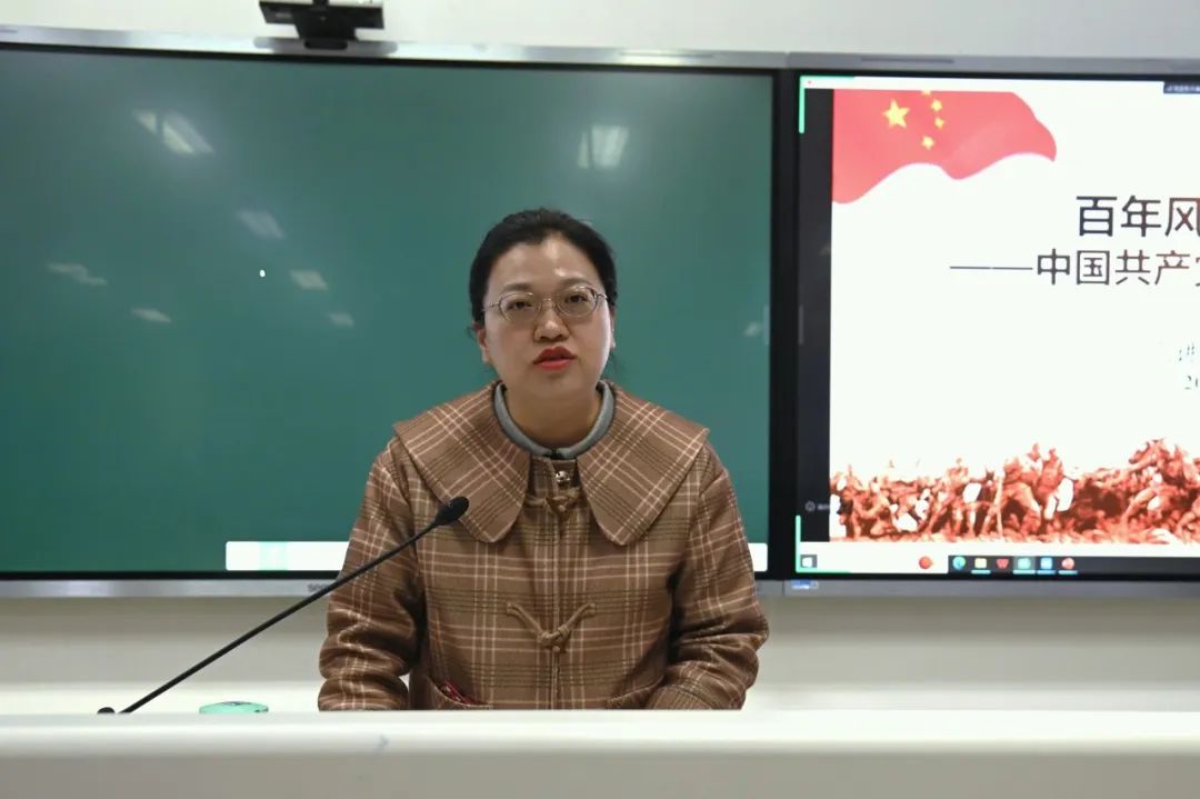 法学院党委组织员陈荟芳副教授梳理了中共党史上的重大事件,阐释了伟大建党精神的深远意义。她强调,这一精神是党长期实践形成的宝贵财富,具有永恒价值,激励着共产党人为实现中华民族伟大复兴的中国梦不懈奋斗。