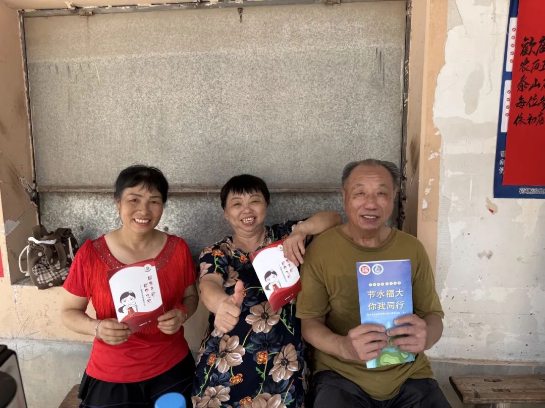 领到宣传手册的居民合影留念