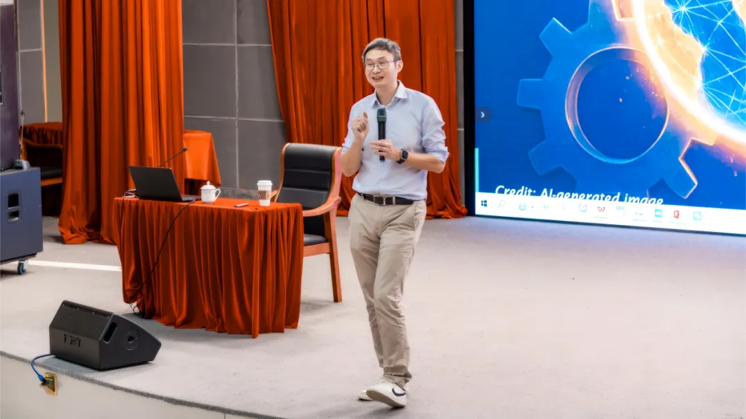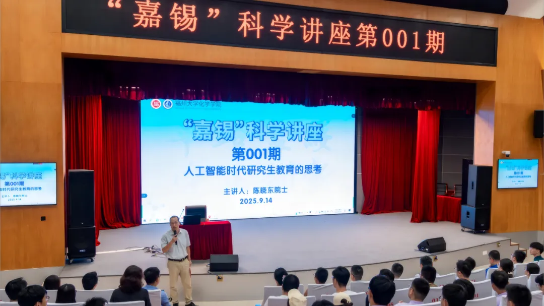 活动在庄严而热烈的气氛中拉开帷幕。钟羽武率先首先致辞,代表学院向2025级研究生新生的到来表示热烈欢迎,并介绍了“嘉锡”科学讲座设立的背景与意义。该讲座以福州大学创始人之一、著名化学家卢嘉锡先生的名字命名,旨在传承和弘扬卢嘉锡先生“严谨治学、勇于创新、甘于奉献”的科学精神,为学院师生搭建高水平的学术交流平台,促进学术思想的碰撞与融合。钟院长特别指出,在人工智能引领科研范式深刻变革的当下,传承卢嘉锡先生的科学精神、培育具有创新能力和家国情怀的高层次人才,是学院人才培养的核心使命与坚定目标。