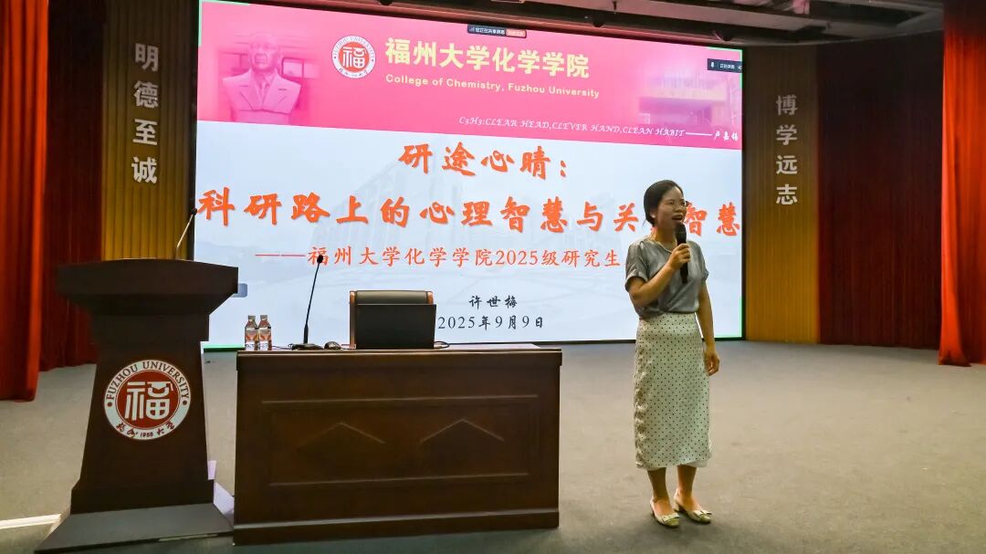 福州大学校心理健康教育与辅导中心许世梅老师为同学们带来《研途心晴:科研路上的心理智慧与关系智慧》专题讲座,为新生提供了多项心理支持方法。她希望大家能善用心理智慧方法,保持“心理健康绿灯状态”,积极适应环境,在科研道路上行稳致远。