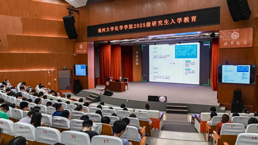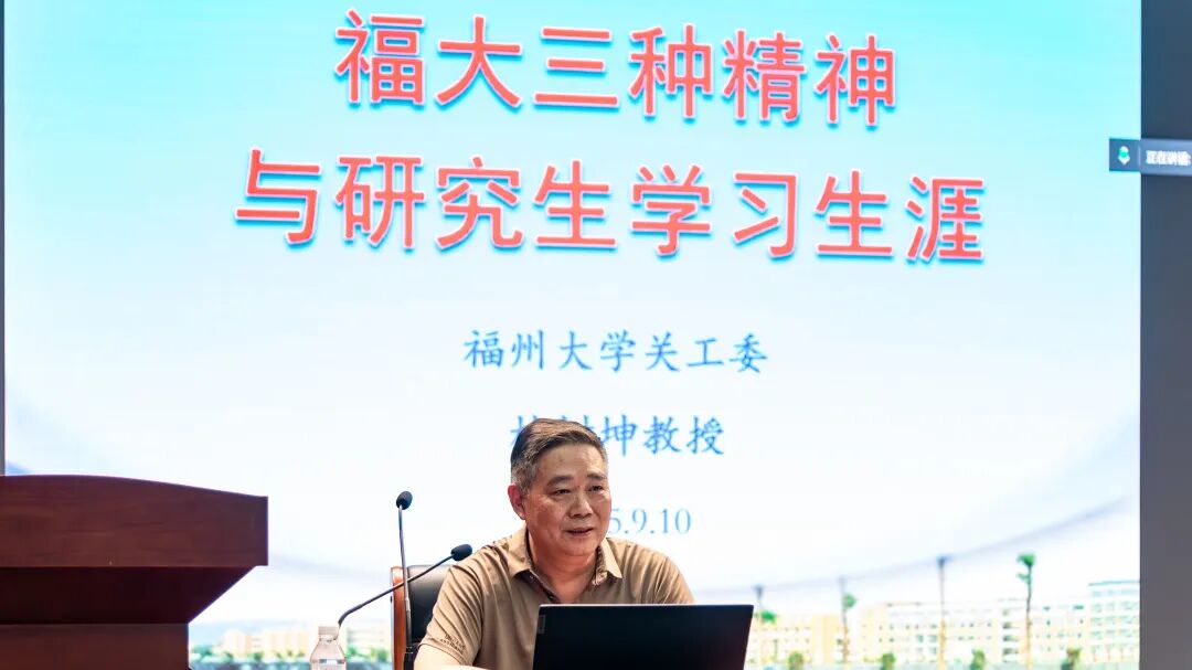 林树坤教授结合校史典型案例,深情阐释了福州大学积淀形成的“三种精神”,鼓励新生以“嘉锡青年”为榜样,树立远大理想,将个人成长与国家发展、民族复兴紧密结合,在科研道路上脚踏实地、勇攀高峰。