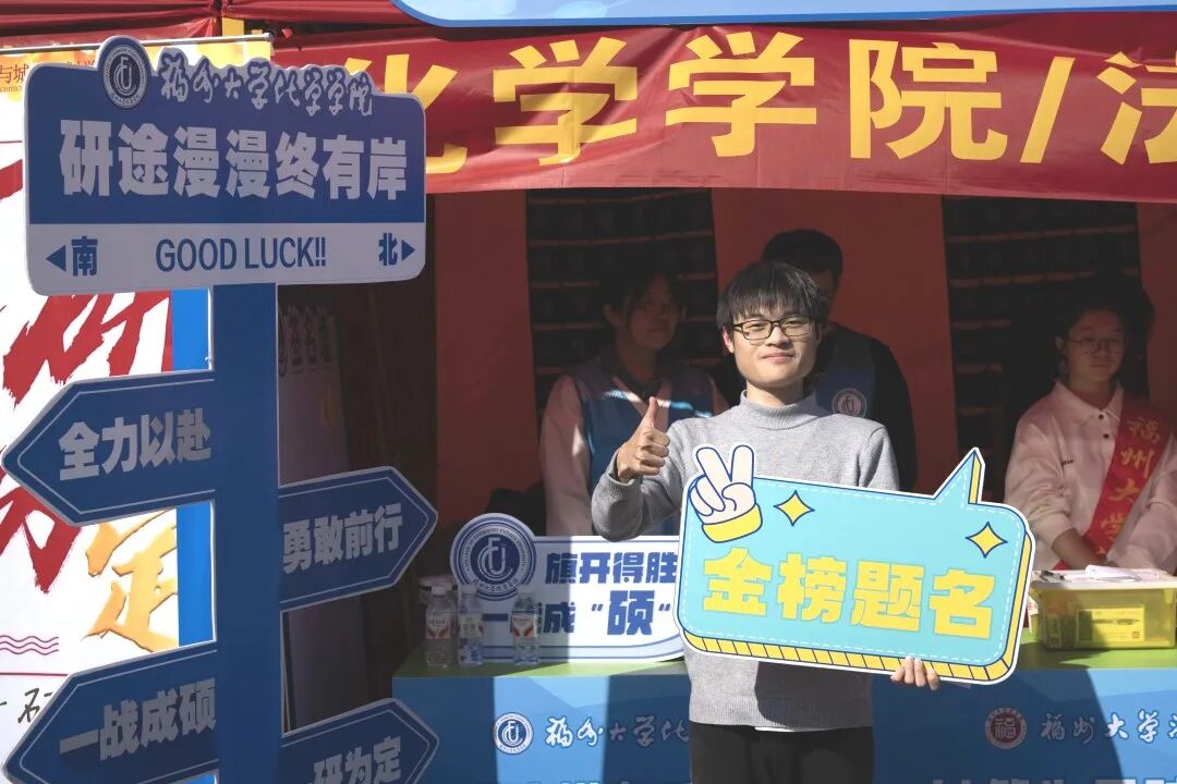 化院大本营的签名墙上,学弟学妹们早已写下他们的真挚祝愿——“愿你笔锋所至皆坦途” “一战成硕” “一研为定”,稚嫩的笔迹里满是敬佩与期盼,成为动人的场外风景。