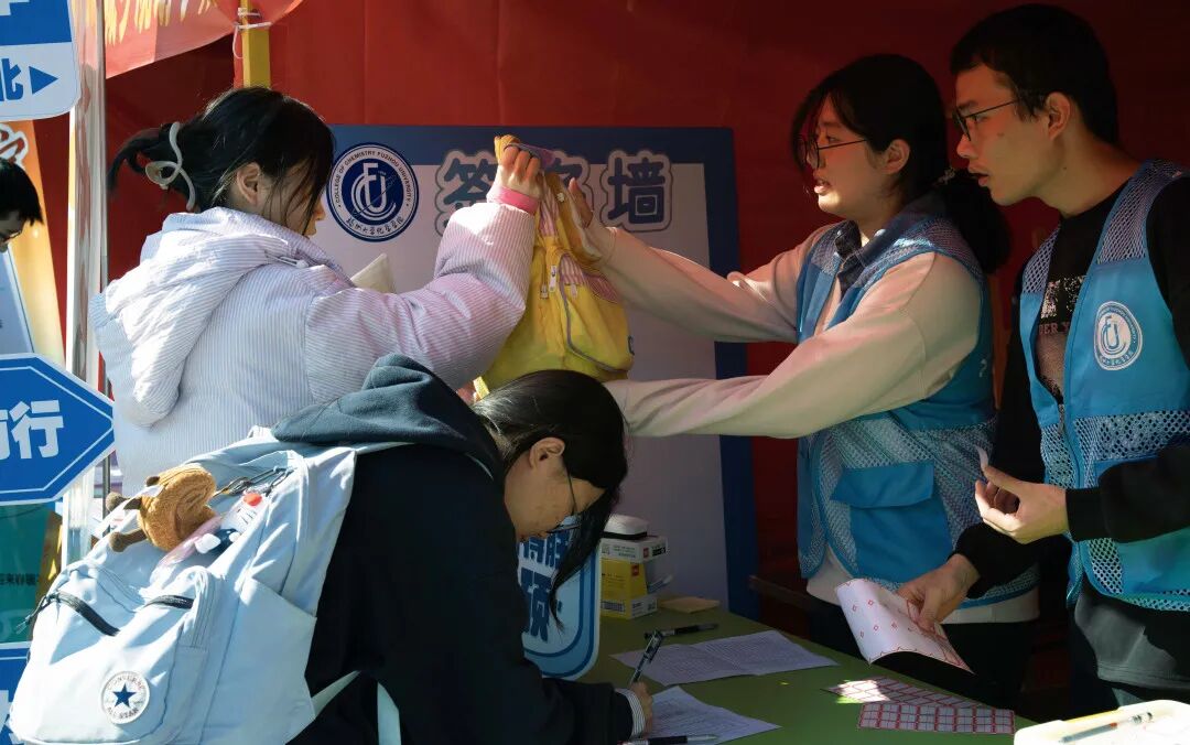 小酚志愿服务队化身“暖心护航员”,用细致周到的服务为考生保驾护航。他们认真保管手机等物品,逐一提醒大家携带好必备证件和文具,为每一位即将进场的学长学姐加油打气,“全力以赴 勇敢前行”“一战成硕”……声声祝福让考点洋溢着互助友爱的温情。