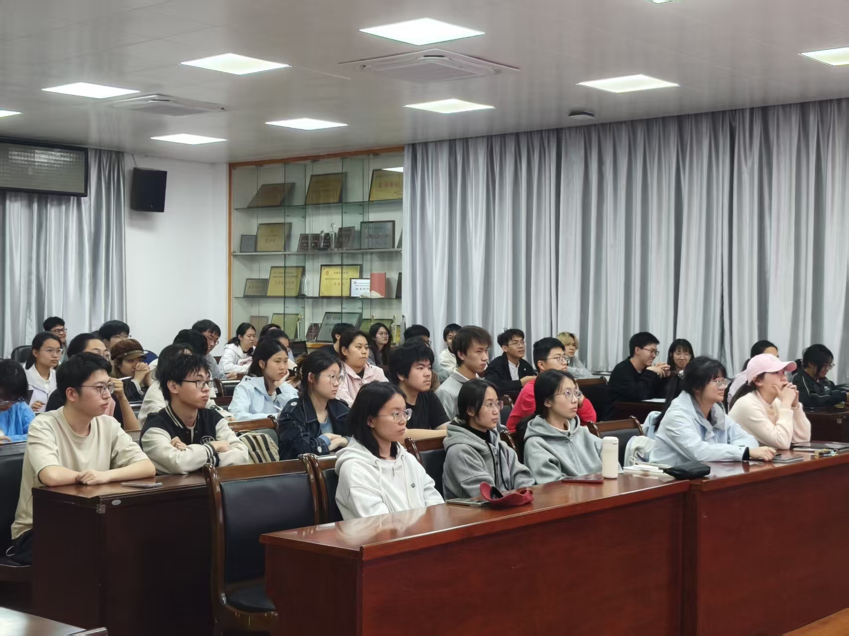 互动环节现场气氛热烈。同学们纷纷踊跃举手,就保研规划、时间管理、材料准备等关键问题积极发问、深入交流。学长学姐们结合自身经历,耐心细致地逐一解答,分享的内容干货满满、实用性超高。台下同学认真聆听记录,频频点头赞同。不少人还主动交流心得、交换思路,在思想的交流与碰撞中收获了宝贵经验,也更加坚定了前行的方向。