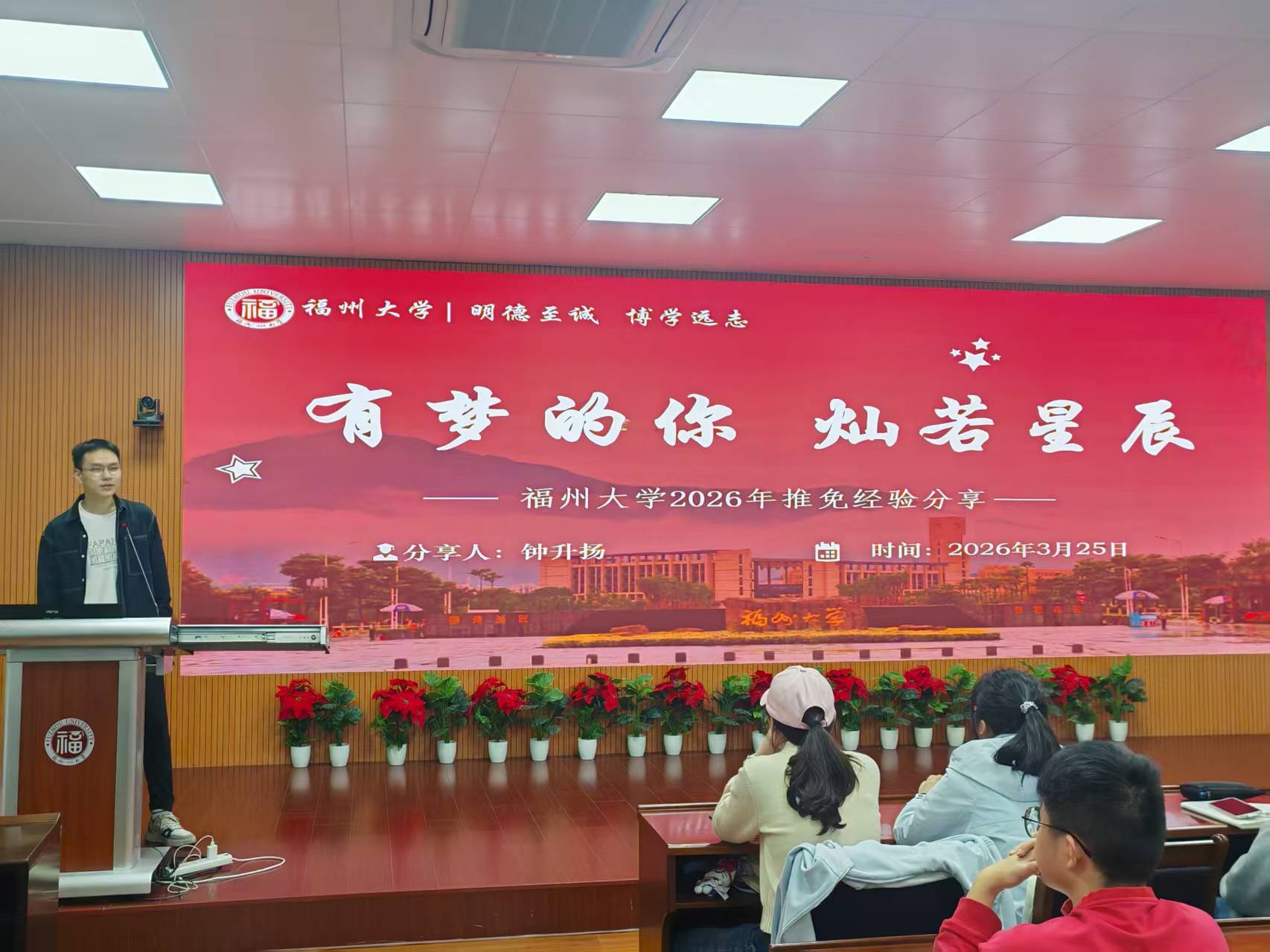 活动伊始,学院辅导员吴宗燚发表开场致辞。他对到场的优秀保研学子表示热烈欢迎与衷心感谢,同时寄语在场同学,希望大家珍惜此次交流机会,认真汲取经验,以坚定的信念、扎实的学识奔赴保研之路,实现学术理想。