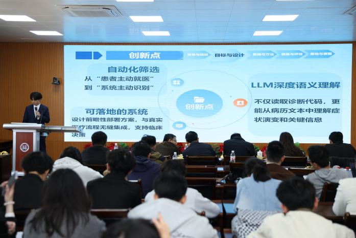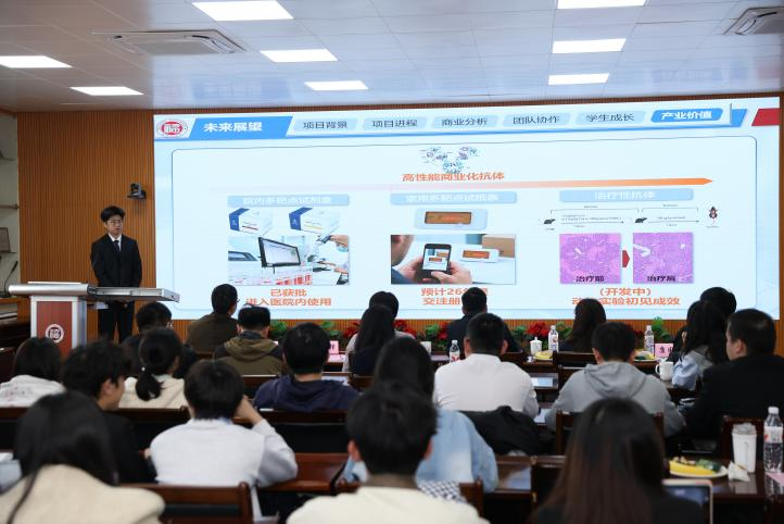校学生工作部(处)部(处)长张红、副部(处)长张志忠、化学学院党委副书记柯江锋、医学院党委副书记陈伟斌、化学学院团委副书记李诗琪、医学院团委副书记史津萌、辅导员李萌等相关负责人出席,2025年中国国际大学生创新大赛国赛金奖项目指导教师陈艺全老师,以及历届国赛获奖项目主要负责人陈李云、俞凯华、康国坚、李雪岩等担任评委。