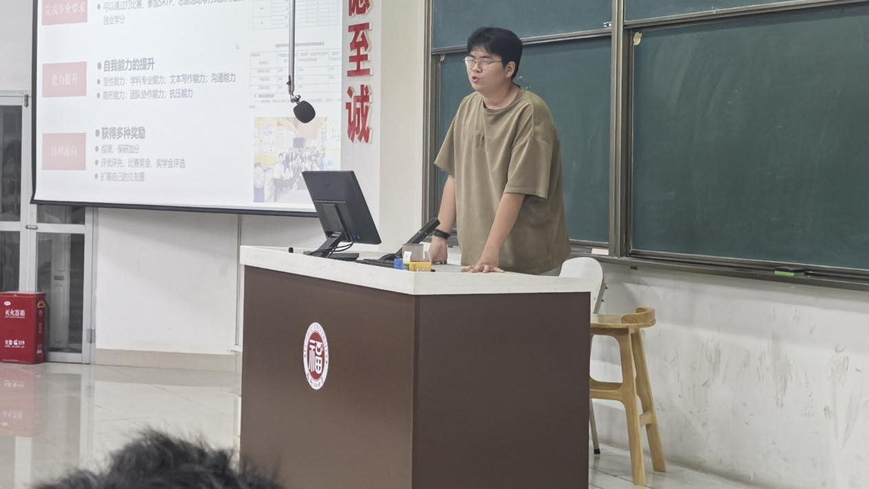 在随后的环节,2022级嘉锡化学拔尖班康国坚同学,为在场同学作赛事经验专题分享并传授大学学习经验。