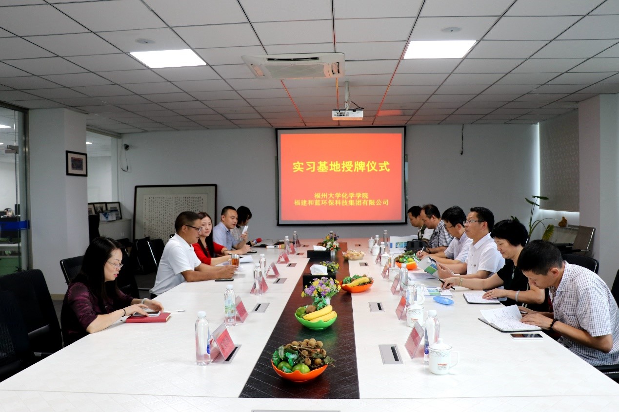 金秋九月,迎来了福州大学化学学院与福建和蓝集团共建大学生实践教育基地的日子,9月11日上午举行挂牌仪式。参加仪式的有:和蓝集团董事长、福建省政协委员胡学潭先生,和蓝集团总经理林芳女士,品管部主任卢宜娟,咨询部主管熊儒宇等;福州大学化学学院副院长袁耀锋教授、副书记刘旺研究员、陈珠灵高工以及实习带队教师刘景东、王建等。会议由熊儒宇主管主持。院企双方就人才培养、项目合作展开了充分的交流,该实习基地的建设,必将使我院本科人才培养工作迈上新的台阶。