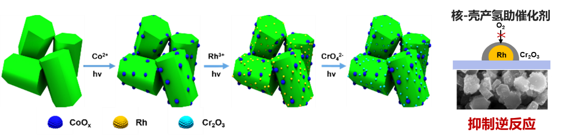 氮化碳光催化剂的表面状态决定了水分解反应的活性和效率。项目在材料表面引入正负电荷中心、构筑局部电场,并结合核壳结构助催化剂(如Rh/Cr₂O₃、CoOx),有效加速电子和空穴的迁移,抑制逆反应,提高光催化制氢效率。通过有机配体修饰助催化剂表面,进一步稳定催化剂结构,使反应更加高效和持久。