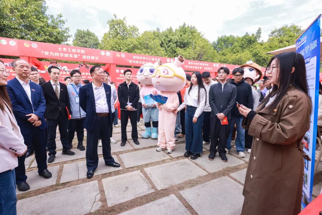 11月24日上午,校学生会、研究生会在青年之家室外广场举办2025年“我为同学做实事”项目交流展示活动。化学学院学生会、研究生会结合学科特色,以展板陈列形式,集中呈现学院2025年度服务学生的实践成果。校党委书记陈国龙、副书记王向阳一行莅临现场指导,与师生深入交流。