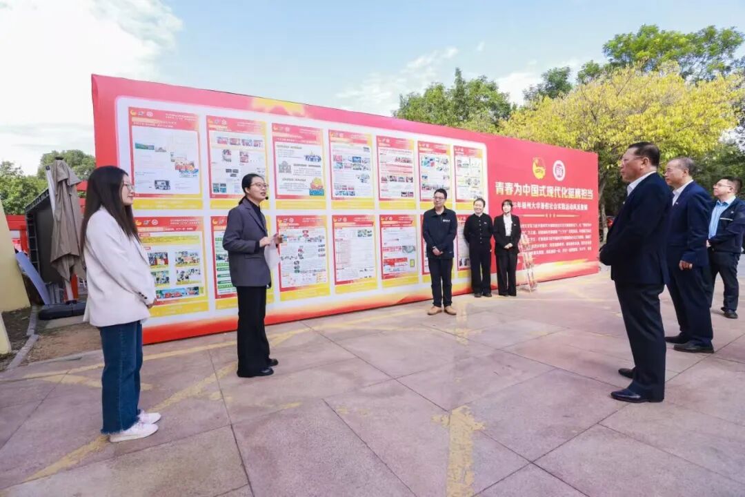 活动现场,“闽乡网盾御虫害,红韵铸魂振乡村”实践队项目负责人俞凯华向校领导详细汇报了项目校地合作的成果。