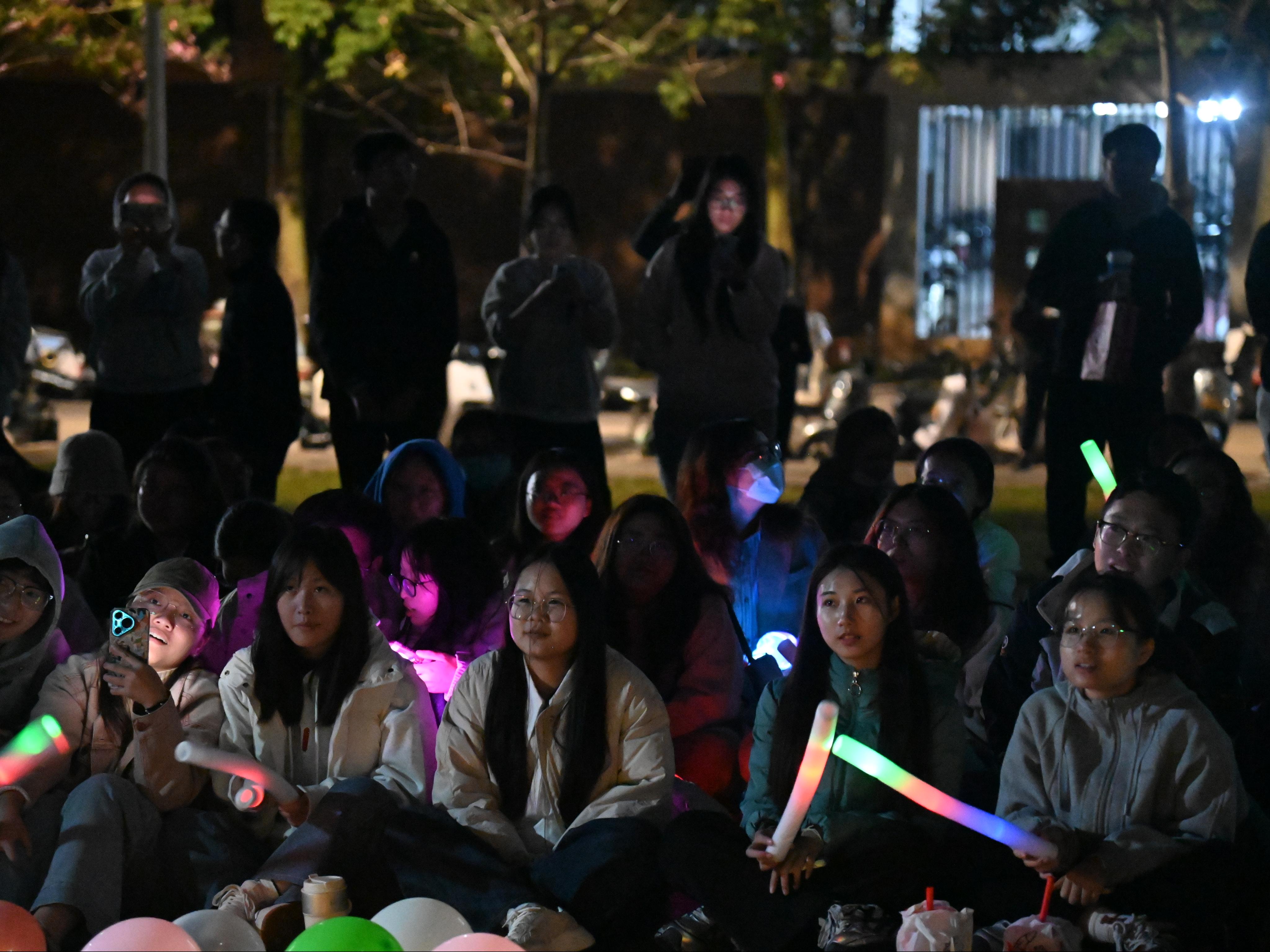 “互动点歌”环节同学们热情参与,将心仪的曲目化作一份份“星光心愿”,当《七里香》的熟悉旋律响起,大家不约而同点亮手机灯光,星光、草坪、歌声、笑脸,共同交汇成专属我们的温暖画面。